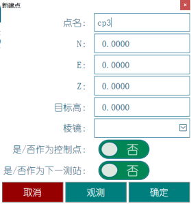 如果此点的坐标是未知的,点击“观测”,满意后,按“确定”即可。