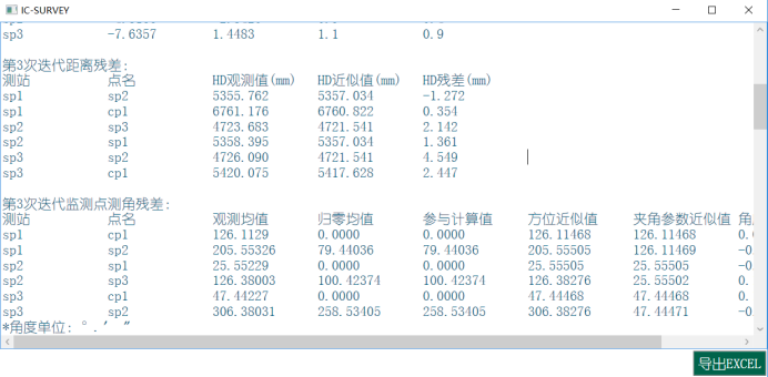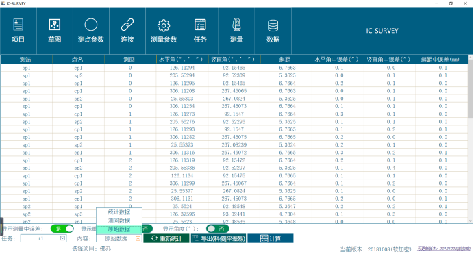 统计数据:是测回数据,按照测站点号,进行均值统计。